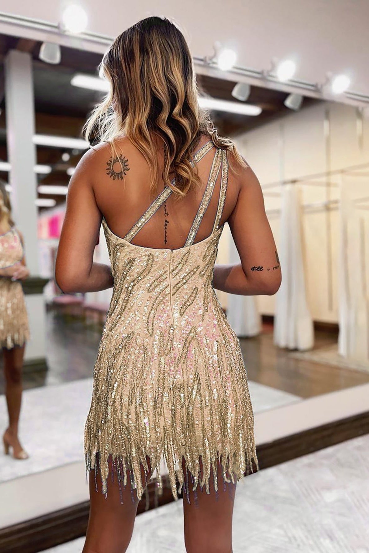 Sequined Homecoming Dress One Shoulder Short Party Cocktail Dress